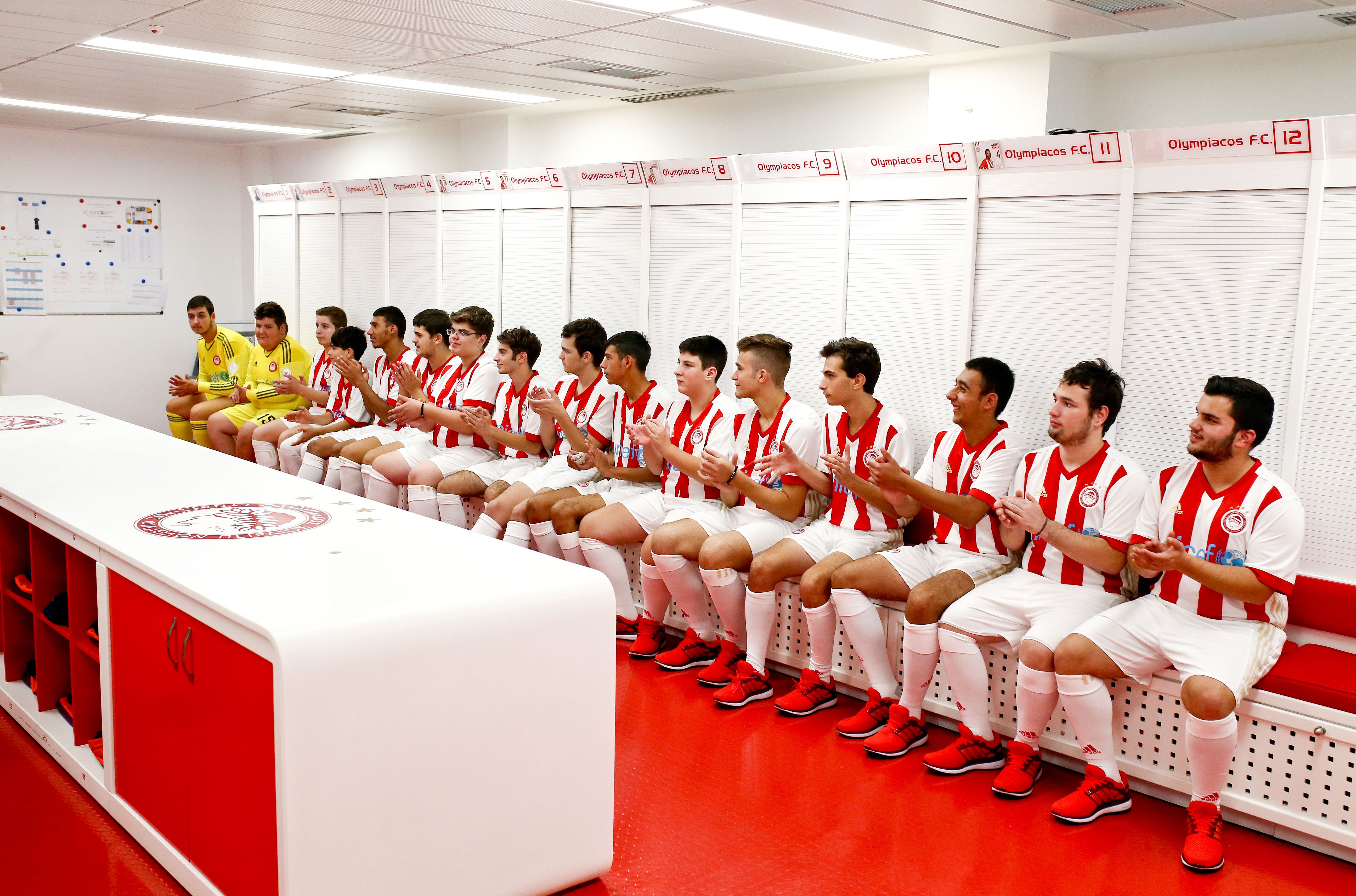 The team “Together in Life – Together in Olympiacos” trains twice per week in OLYMPIACOS FC Training Centre, under the supervision of two coaches who hold a degree in Special Education and with the full support of the Academy’s technical and medical personnel.