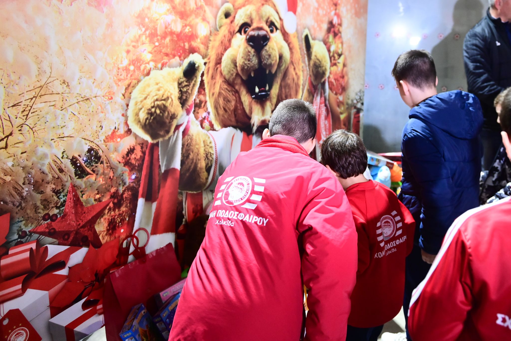 As soon as they arrived at “G. Karaiskakis,” all the players and the coaching staff got off the buses holding a gift to place under the decorated Christmas tree at the stadium’s V.I.P. entrance. The Christmas tree was filled with gifts for young children from ELPIDA, which they will receive in the next few days.