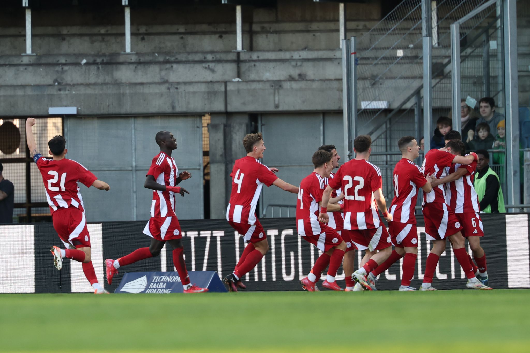 The youth team of Olympiacos achieved a legendary qualification to the UEFA Youth League quarter-finals by defeating Sturm Graz 5-4 in a penalty shootout, following a 1-1 draw in regular time, in Austria. The scoring opened in the 62nd minute for Olympiacos with a header from Antonis Papakanellos, while the hosts equalized in the 90+3rd minute through Koïta with a close-range finish.