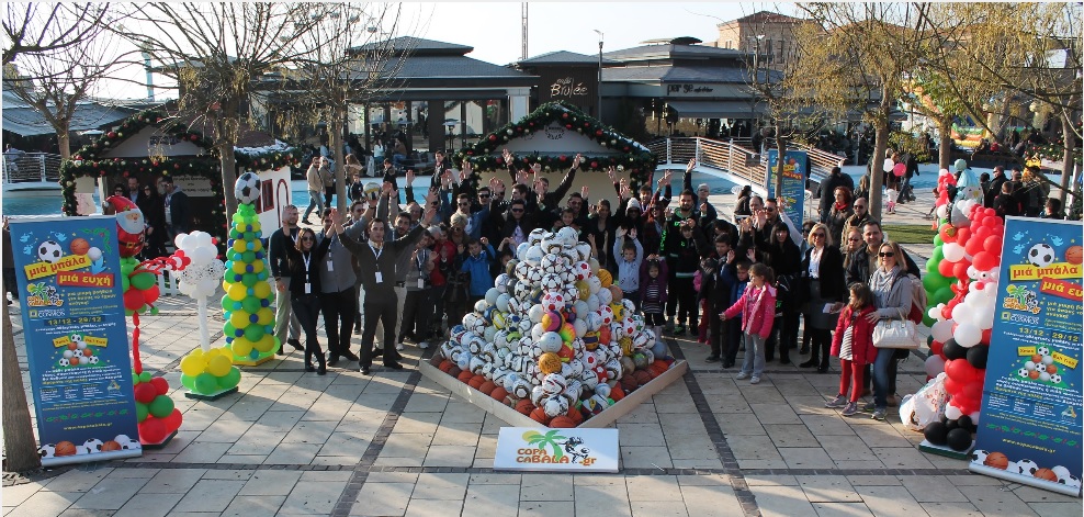 El objetivo de esta labor era recoger balones que primero servirán para decorar el Xmas Ball Tree en un centro comercial de Tesalónica y luego, se ofrecerán a fundaciones y escuelas de todo el país.