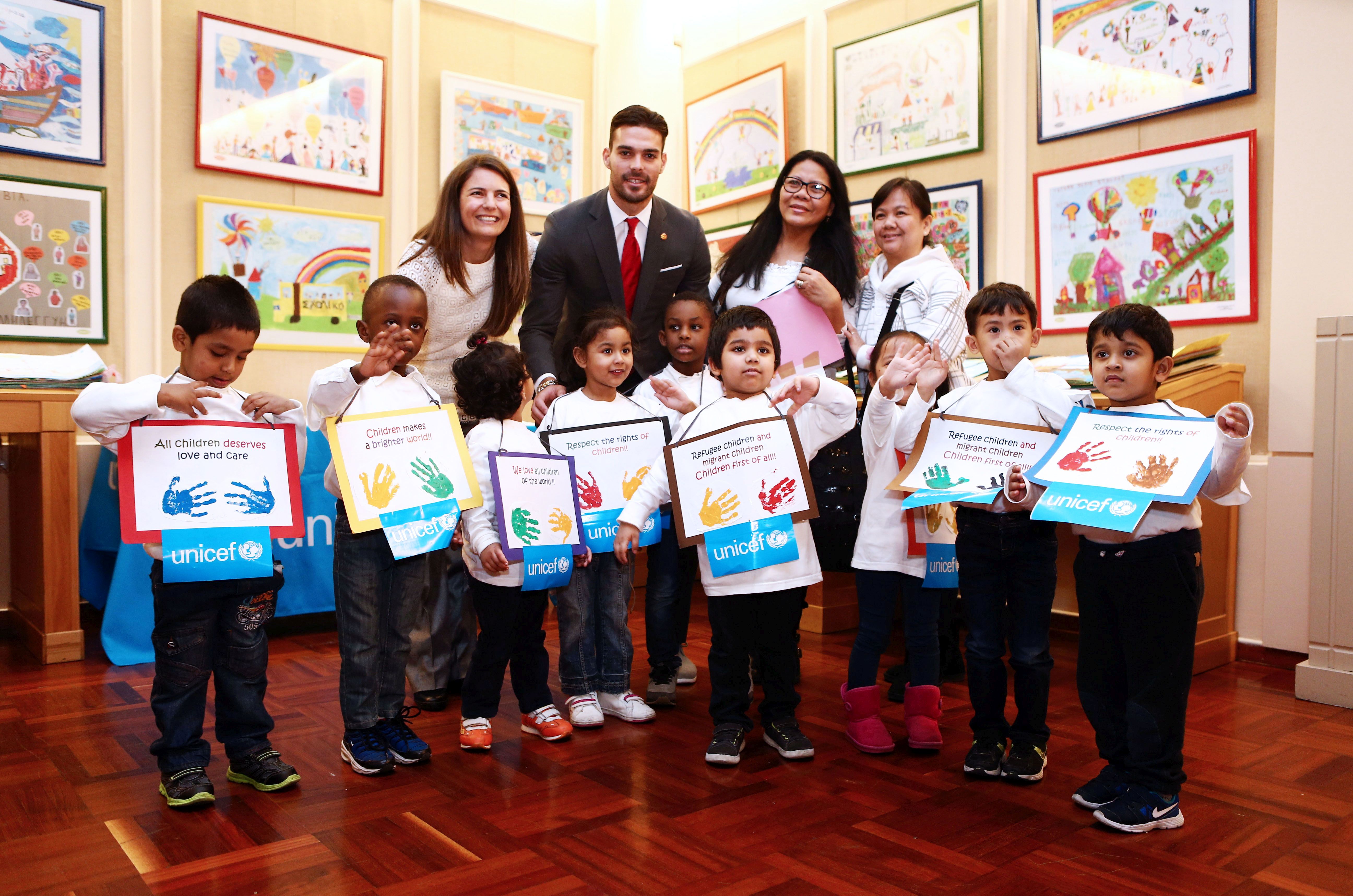 “Me alegra mucho estar presente en este evento de Unicef. Represento a mis compañeros en el Olympiacós. El equipo apoya la “Campaña 100%” de Unicef, de enorme alcance. Proporciona ayuda a muchos niños del mundo. Todos estamos unidos en esta lucha. Nos alegra haber renovado el acuerdo de colaboración con Unicef y tenemos esperanzas en que esta importante labor continue en el futuro”, fueron las palabras de Alberto Botía en Olympiacós TV.
