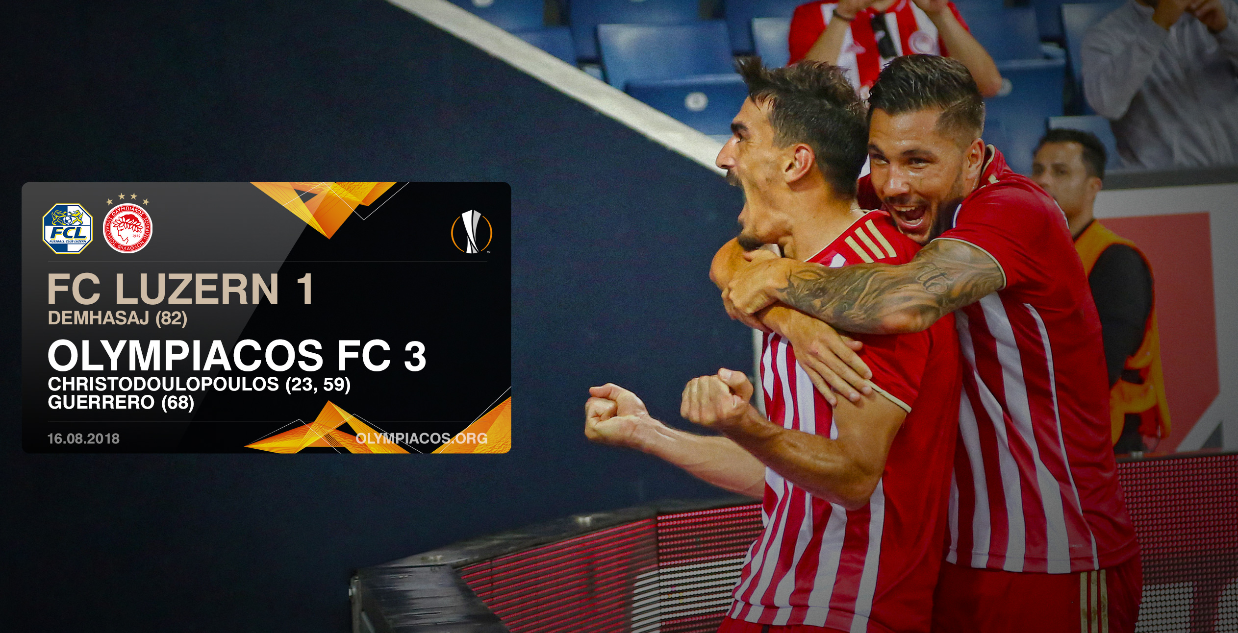 Jugando un fútbol bonito por segundo encuentro consecutivo y sin dejar mucho margen de disputa a su rival, el Olympiacós se impuso cómodamente también en Suiza al Lucerna por 1-3. La Leyenda, que demuestra en cada partido que está presente y que cada vez es más fuerte y más competitivo, podría haber metido muchos más goles. Lázaros fue de nuevo el autor de dos goles (23’, 59’) y condujo a los rojiblancos a una nueva victoria fácil, mientras que Guerrero (68’) por su parte logró el tercer gol de nuestro equipo. En el bando de los anfitriones, Demhasaj fue el que redujo la diferencia en el marcador en el minuto 82.