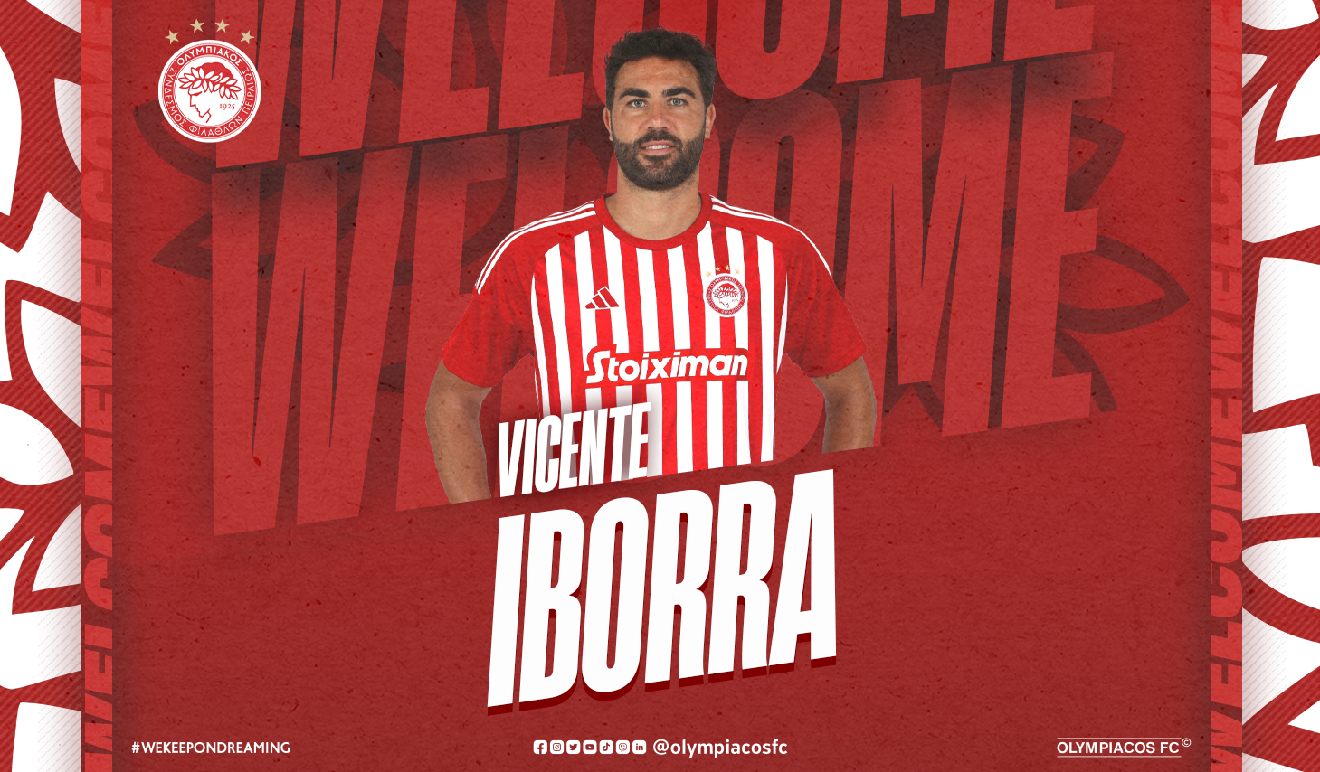 El Olympiacós FC anuncia el fichaje del centrocampista español Vicente Iborra. Nacido el 16 de enero de 1988 en Valencia, dio sus primeros pasos futbolísticos en la cantera del Levante, con el cual debutó profesionalmente en la temporada 2007-2008.