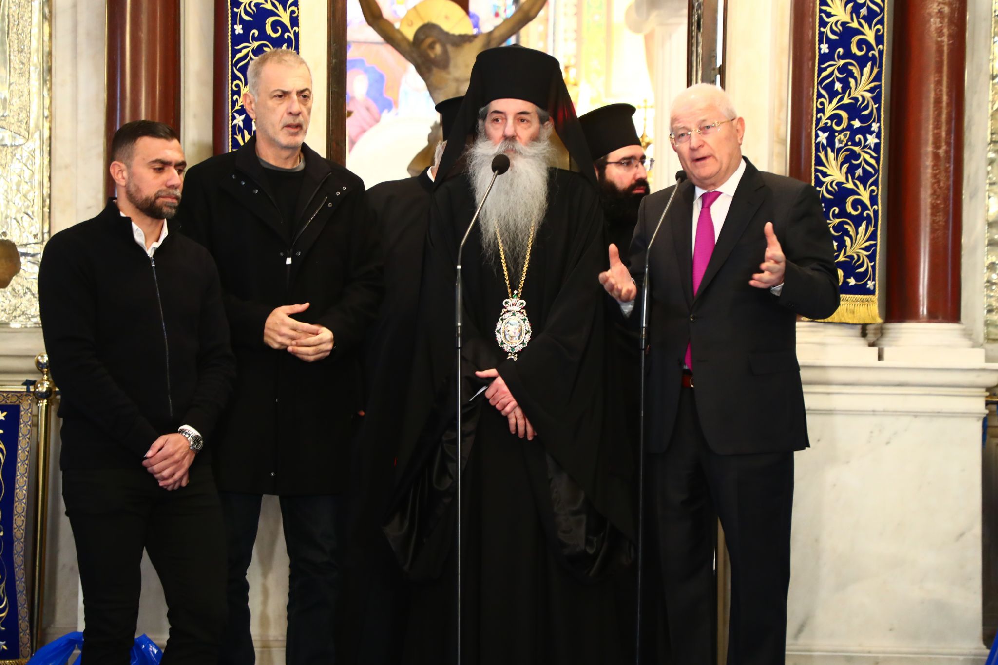 Nikos Gavalas señaló: «A lo largo del año, y en estos días como no podría ser menos, el Olympiacos y nuestro presidente, Evangelos Marinakis, apoyan con hechos la gran labor de la Diócesis de El Pireo, devolviendo así el cariño de la gente al club más grande del país. Es un compromiso adquirido por el Sr. Marinakis seguir apoyando la labor de la iglesia en el futuro».