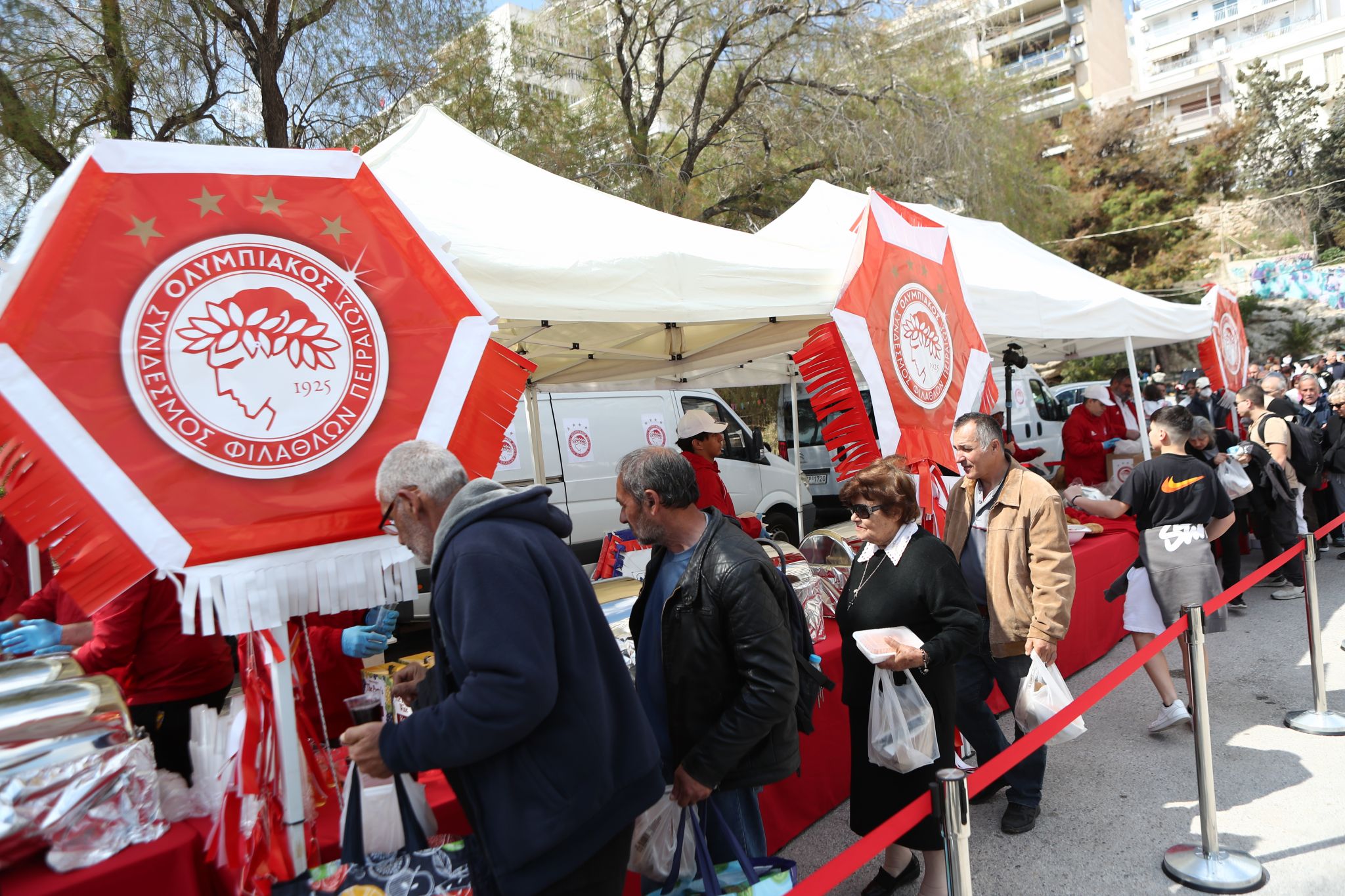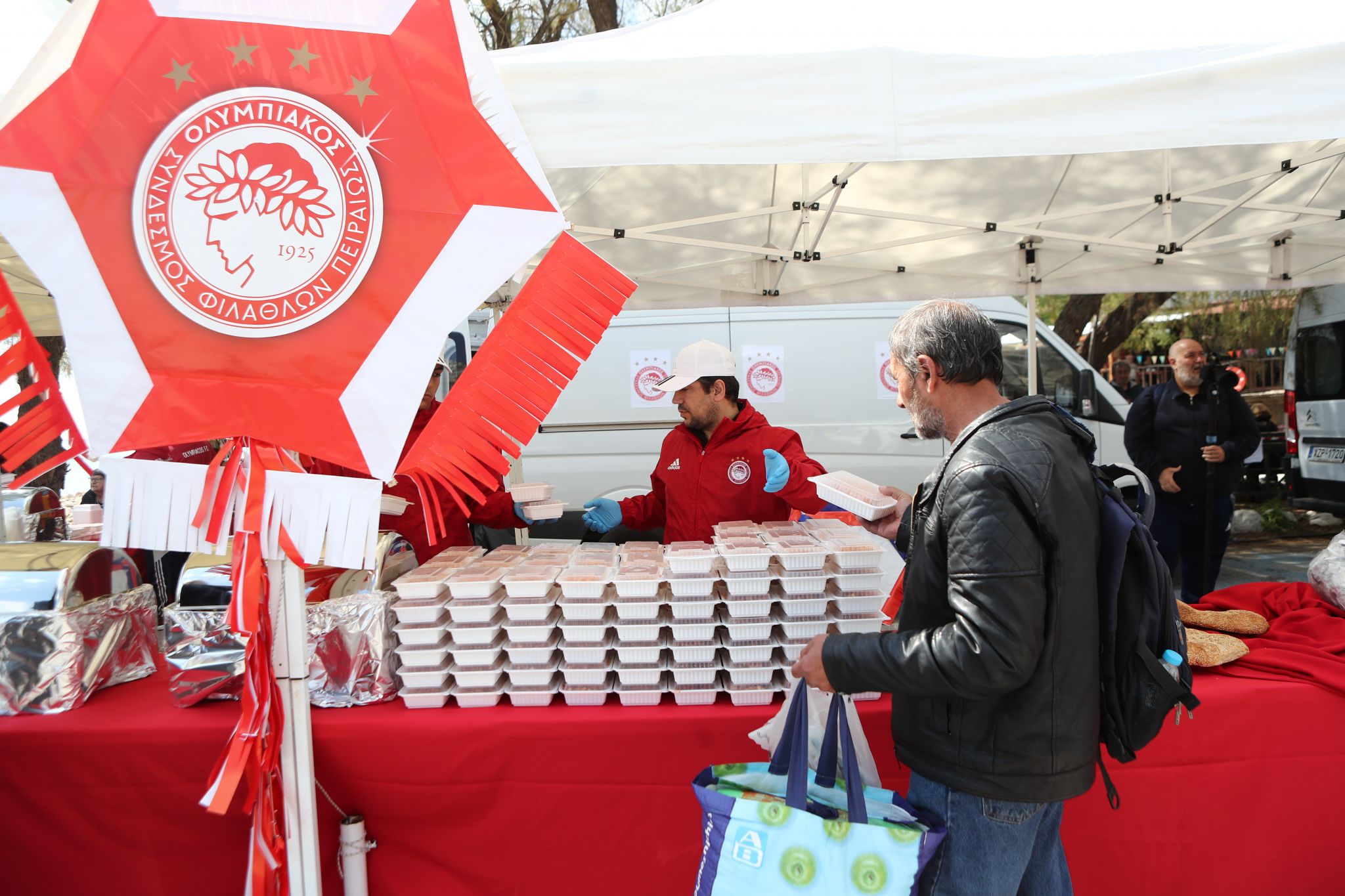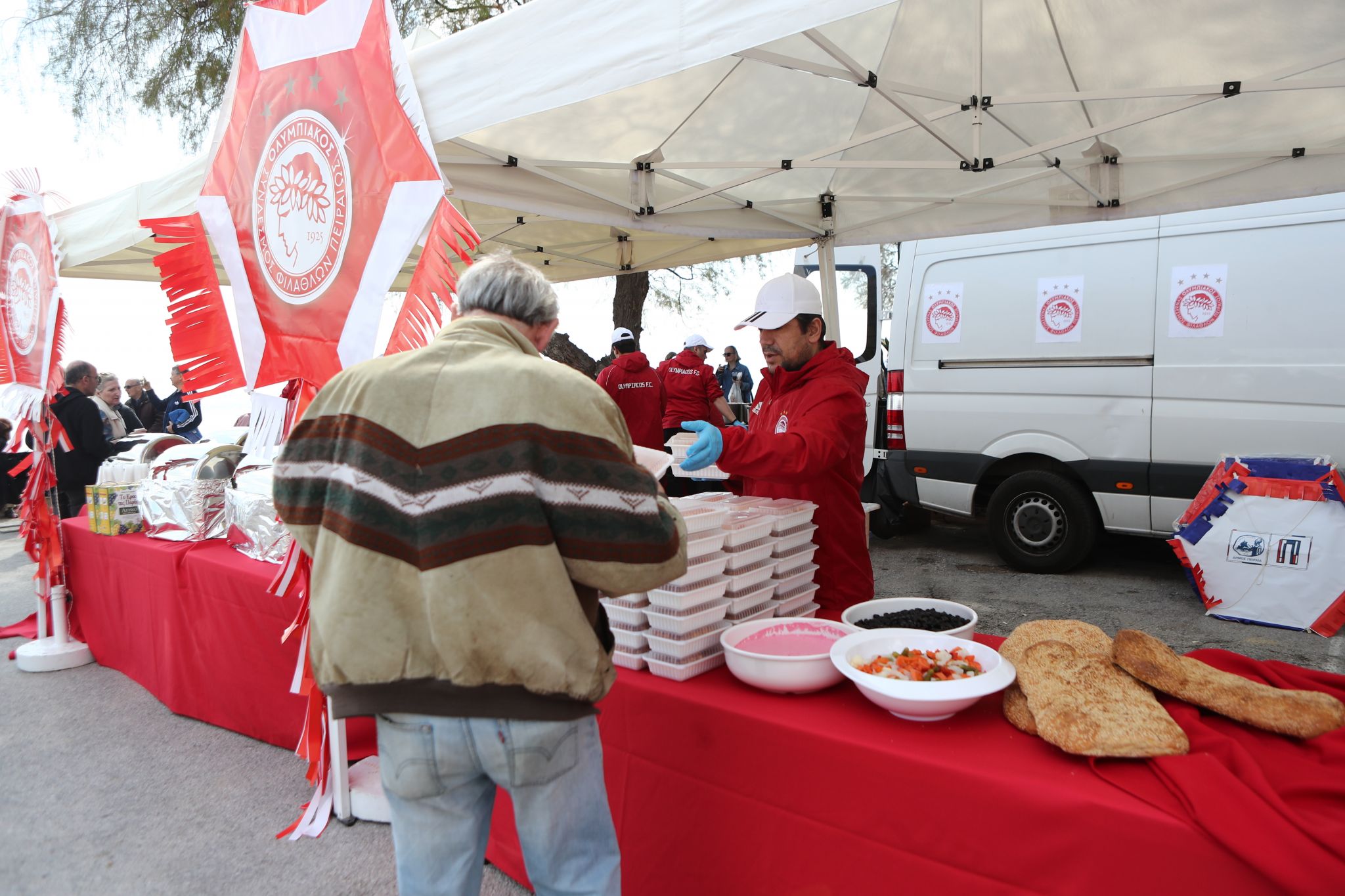 Como cada año, también este año los rojiblancos repartieron miles de comidas con platos de la Cuaresma ortodoxa, ofrecidas por el presidente del Olympiacos FC, Sr. Evangelos Marinakis.