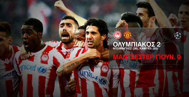 La Légende a fait un pas décisif vers sa qualification en quarts de finale de la UEFA Champions League! Lors du match aller des 8emes de finale de la compétition face au Manchester United à «G. Karaiskakis», notre équipe s’est imposée 2-0 et se place en position avantageuse en vue du match retour à Old Traford!
