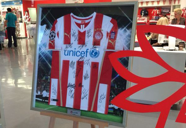 Dans le cadre du partenariat entre l’Olympiacos FC et l’UNICEF ayant pour but de vacciner 50 000 enfants en Grèce et à l’étrange, 200 t-shirts collector de l’Olympiacos signés par nos joueurs seront mis en vente!