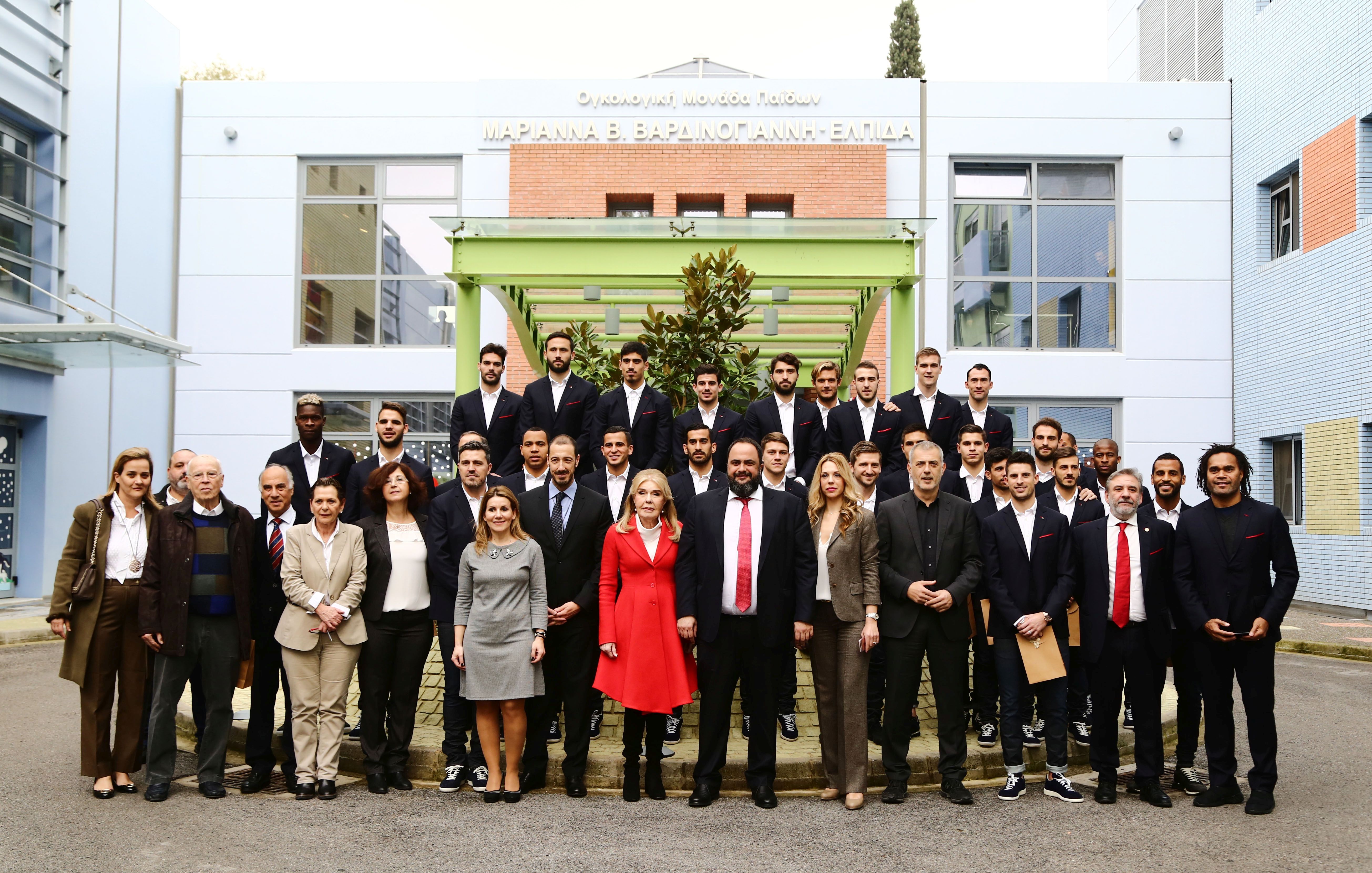 L’Olympiacos appui cette année également Mme. Mariana Vardinoyani, de « ELPIDA » et de l’« Association ELPIDA » (“ESPOIR” en grec), avec l’objectif de fournir de l’aide aux enfants dans le besoin. Qui ont besoin de soutien, de soins et de traitements médicaux. « ELPIDA » est présente, c’est une famille tout comme l’Olympiacos. Et les familles se soutiennent grâce à l’appui mutuel et à la solidarité des uns envers les autres. Le chef d l’Olympiacos, Mr. Vangelis Marinakis est toujours présent là où il faut. Et c’est ce qu’il fait ici avec les enfants. Avec Mr. Marinakis en tête, la famille de l’Olympiacos FC était présente ce jeudi matin dans le quartier de Gudí, dans le Service d’Oncologie Pédiatrique Mariana Vardinoyani – ELPIDA, avec l’objectif d’apporter un soutien moral et pratique à ce Service en plus de son soutien à l’Association des Amis d’Enfants avec un Cancer – Elpida.