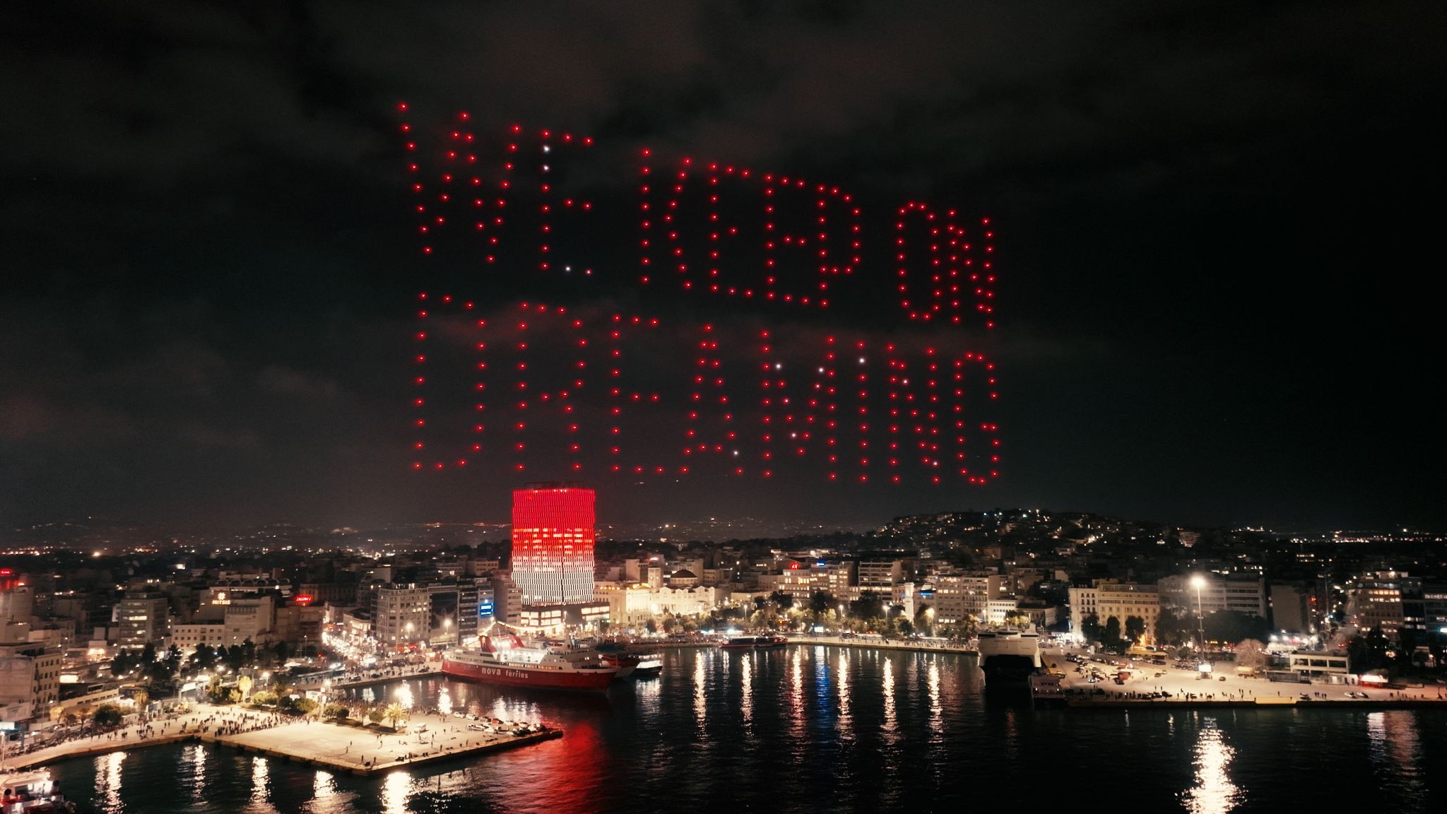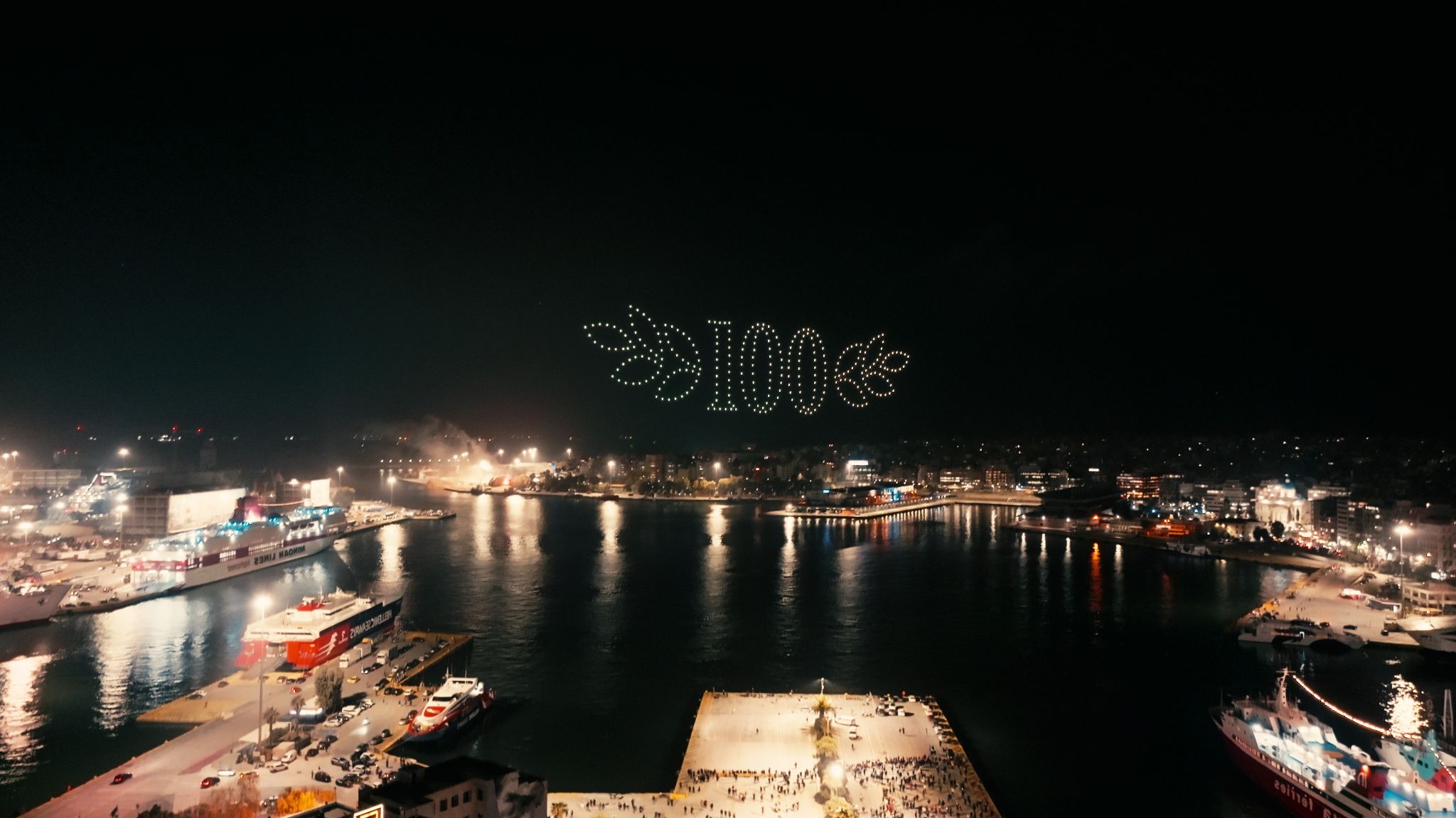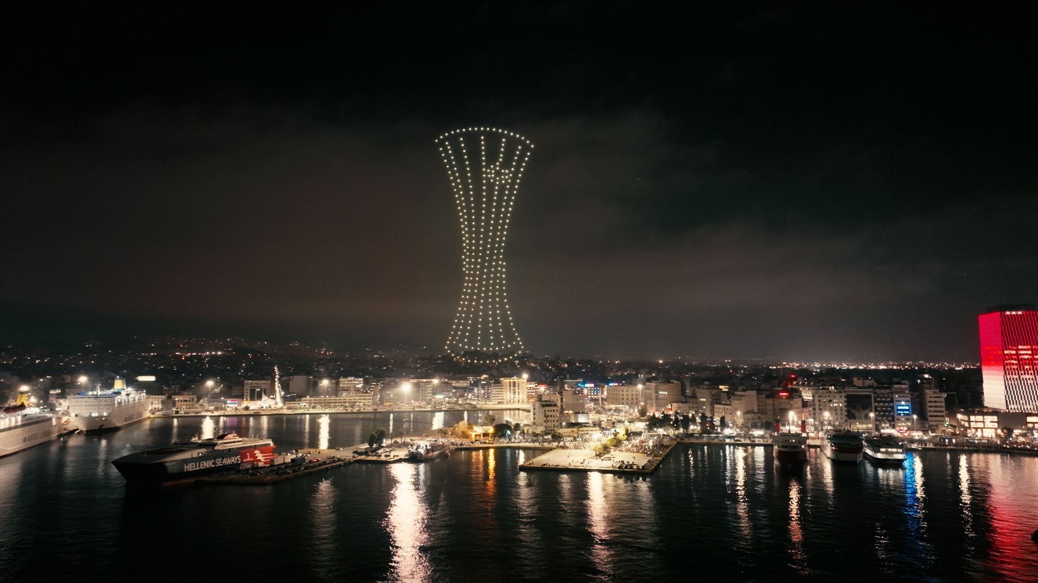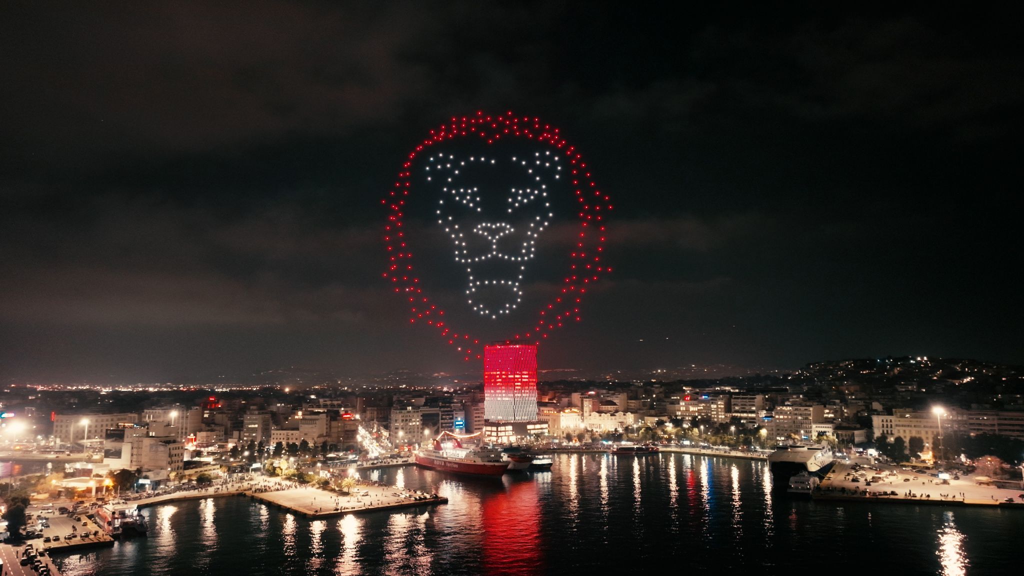 La nuit s’est transformée en jour dans tous les quartiers du grand port grec, tandis que 300 drones ont créé un spectacle rouge et blanc unique en son genre, du jamais vu dans le pays. Les images stupéfiantes ont captivé le public du monde entier, laissant une trace indélébile dans notre histoire.